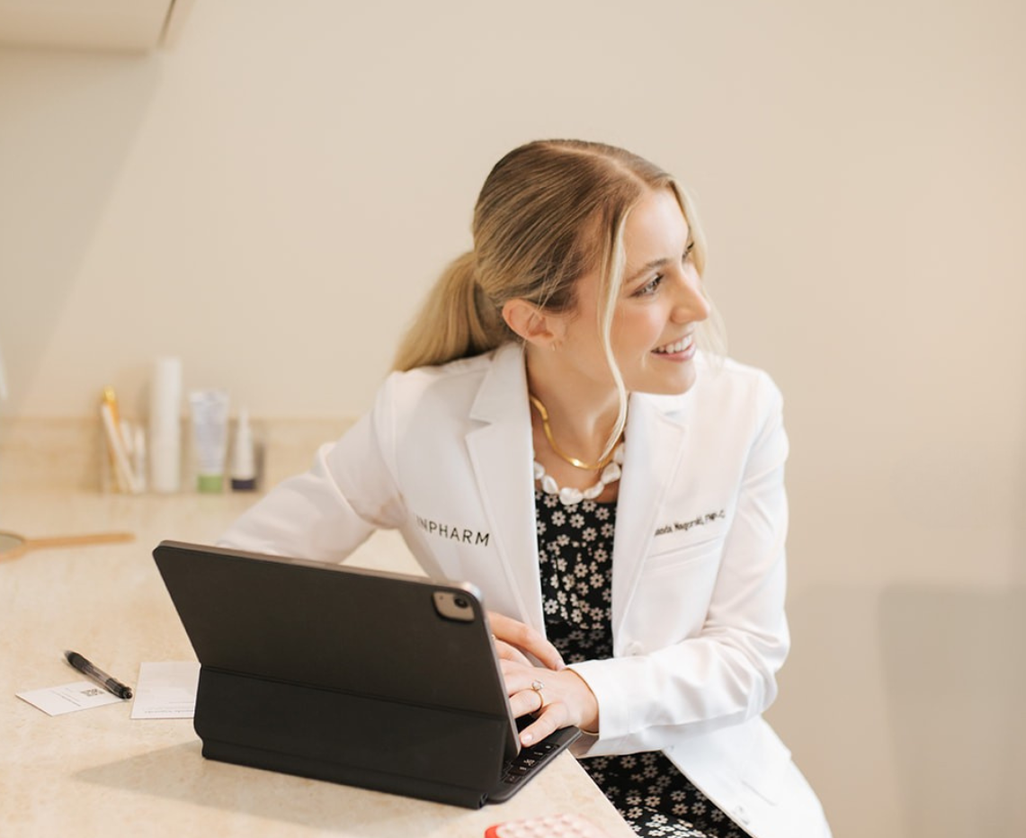 At Skin Pharm, you’ll always be seen by a board-certified provider — either a nurse practitioner or physician assistant — who specializes in cosmetic dermatology.